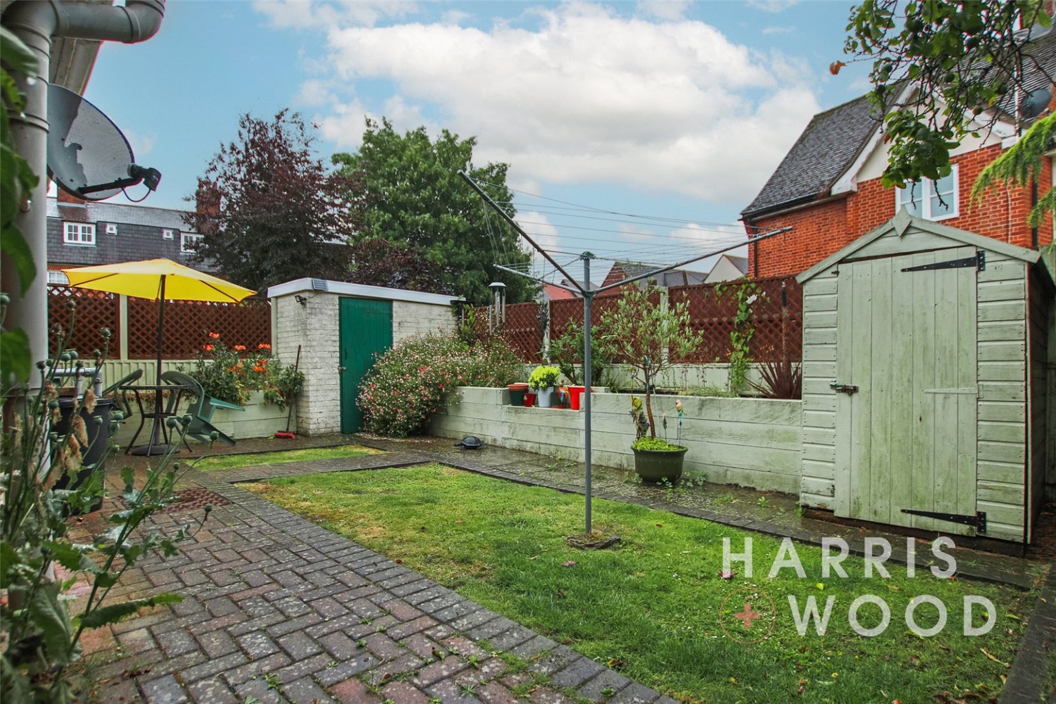 Fully enclosed and private, laid to lawn, gate to side, flower beds and sleepers, patio area
