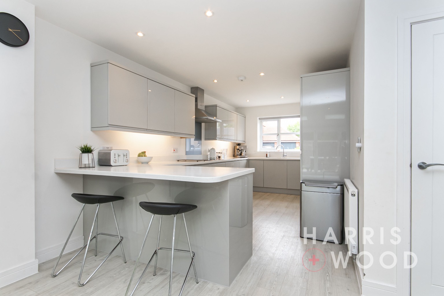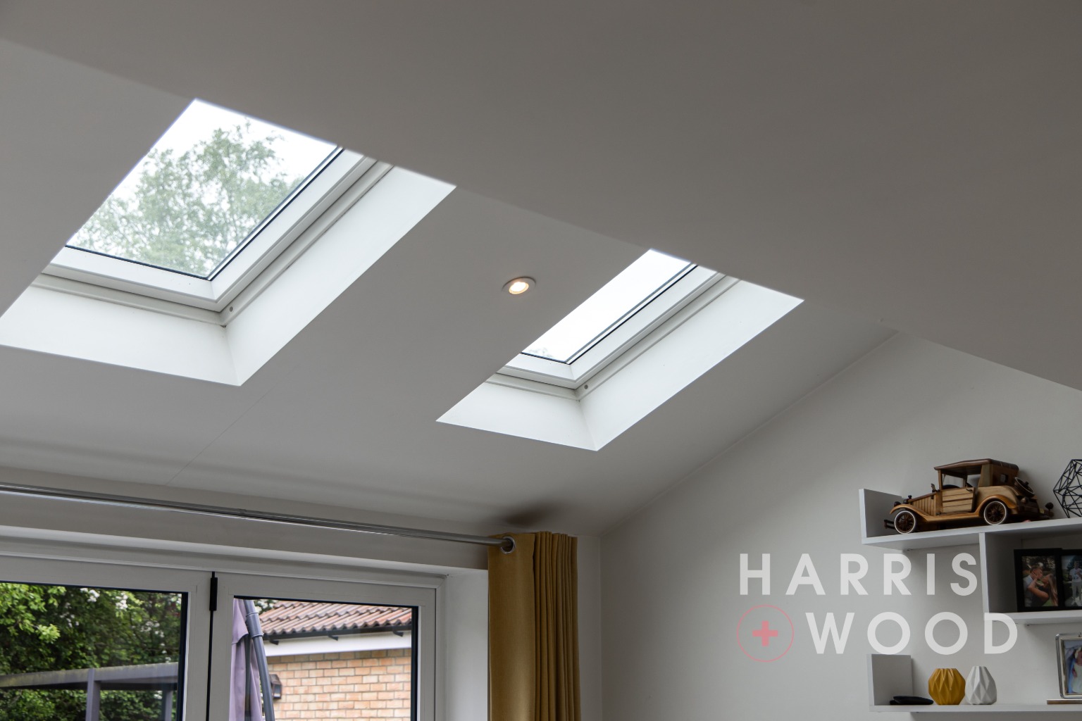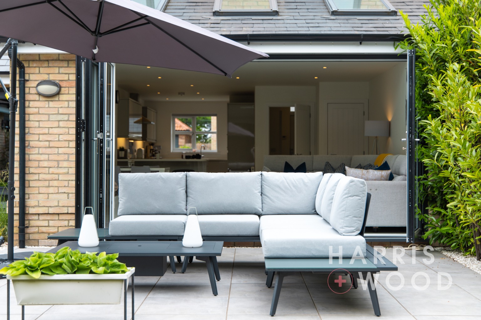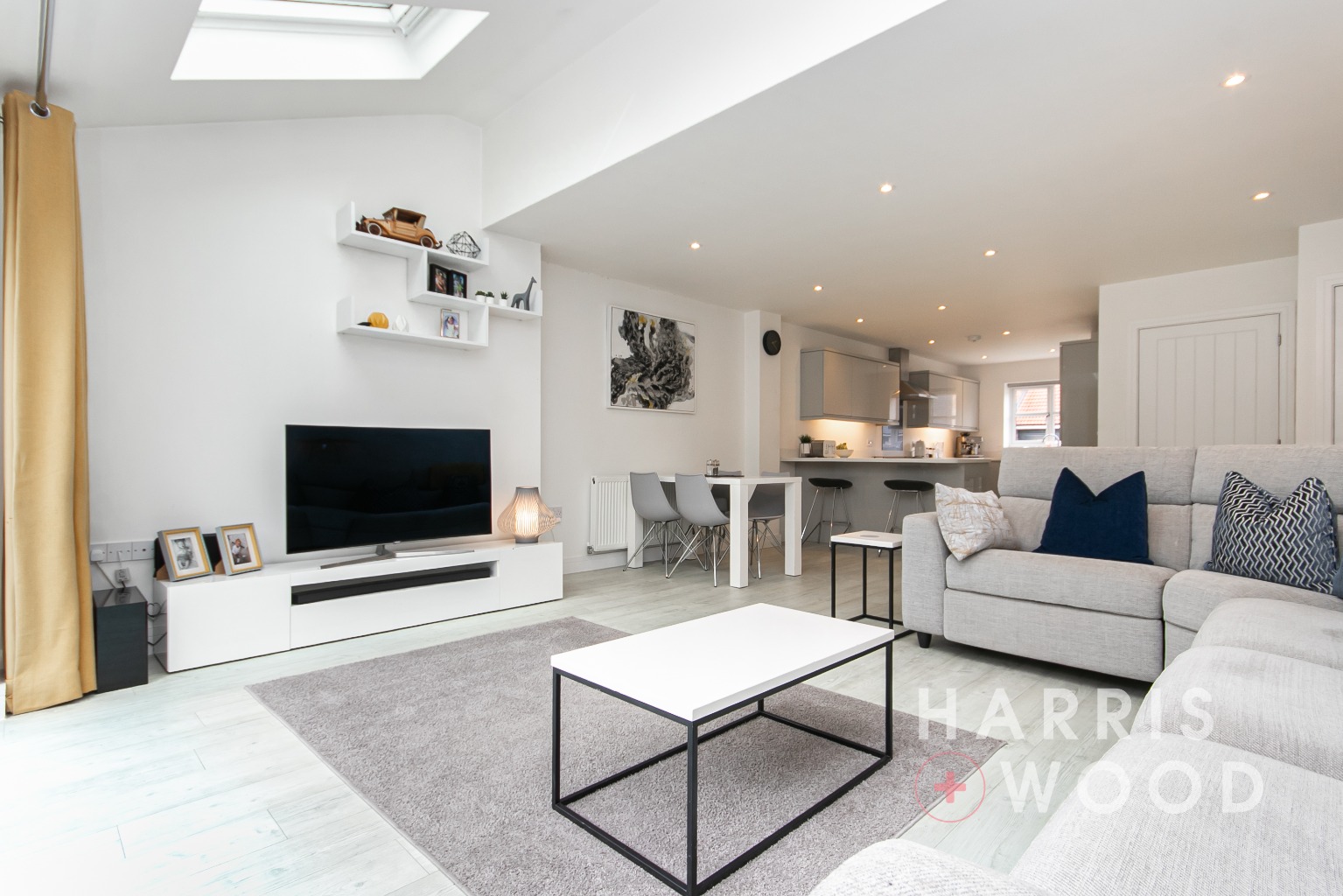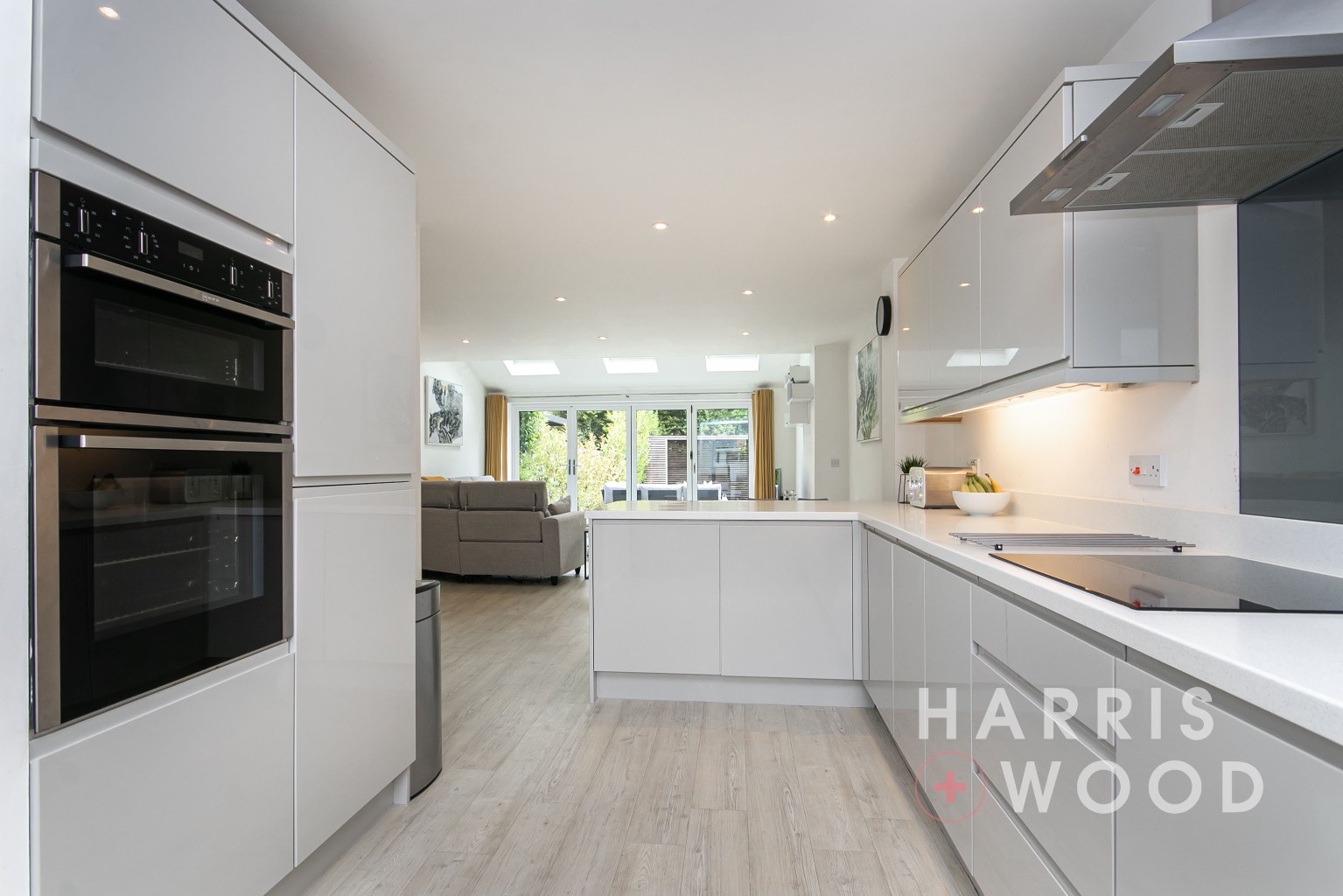 Three skylight windows, b-folding doors leading out onto the rear garden, built in understairs storage cupboard, wood effect flooring