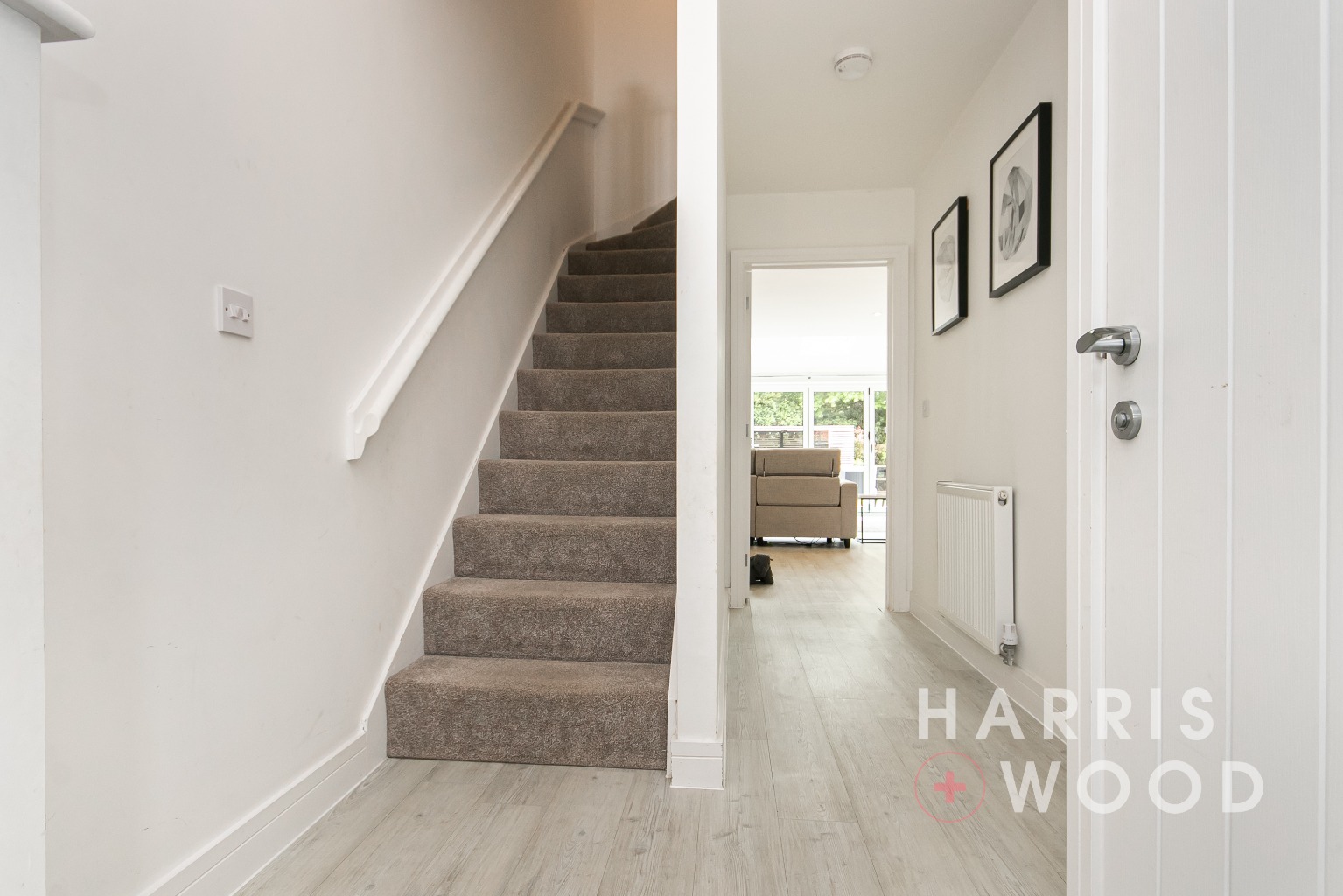 Entrance door, stairs rising to the first floor landing, doors leading off