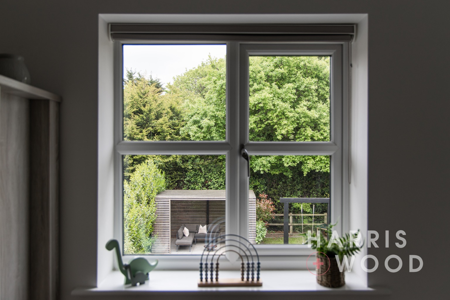 Double glazed window to front, wood effect flooring, door to: