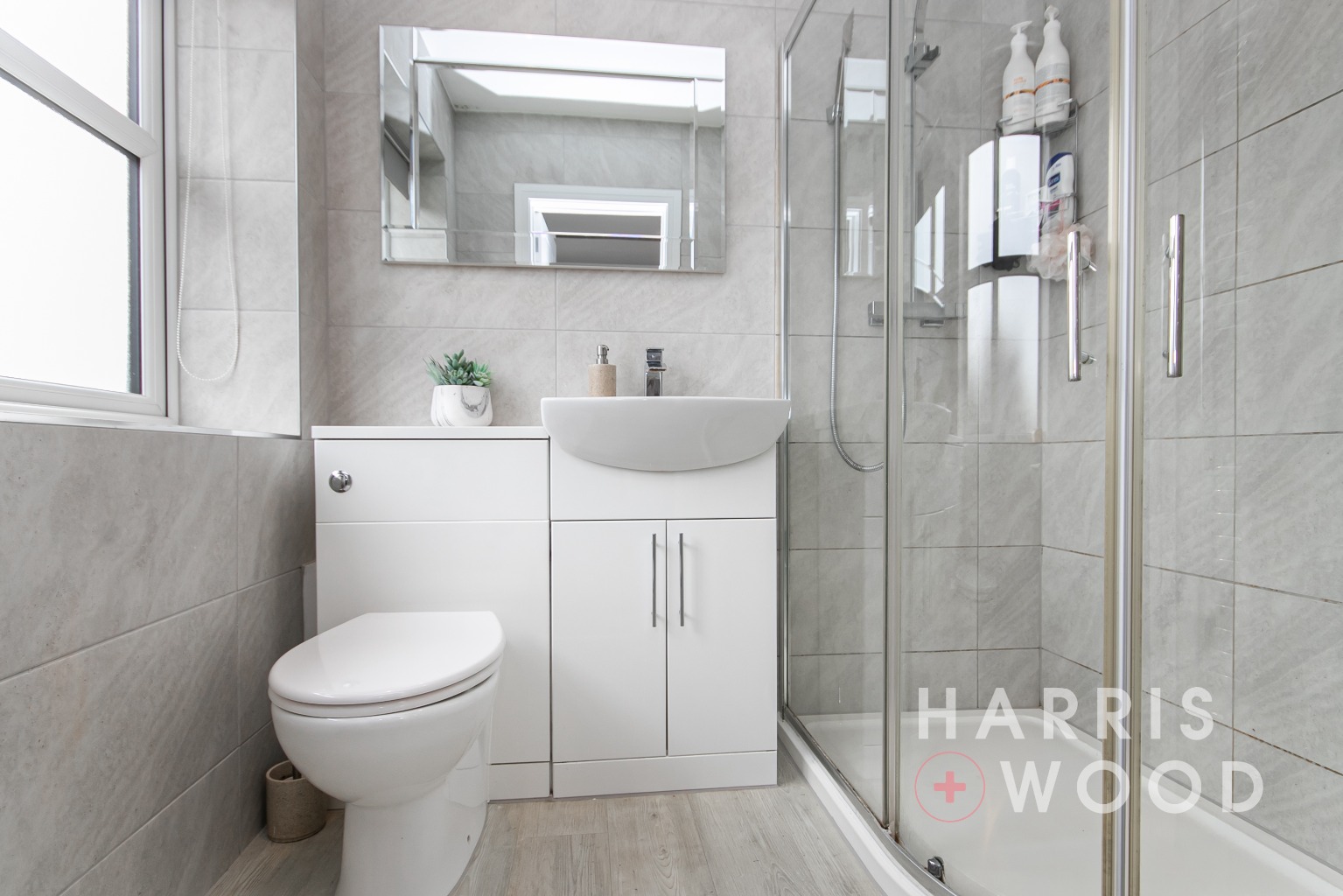Double glazed window to front, low level WC, wash hand basin, corner shower cubicle, heated towel rail, extractor fan