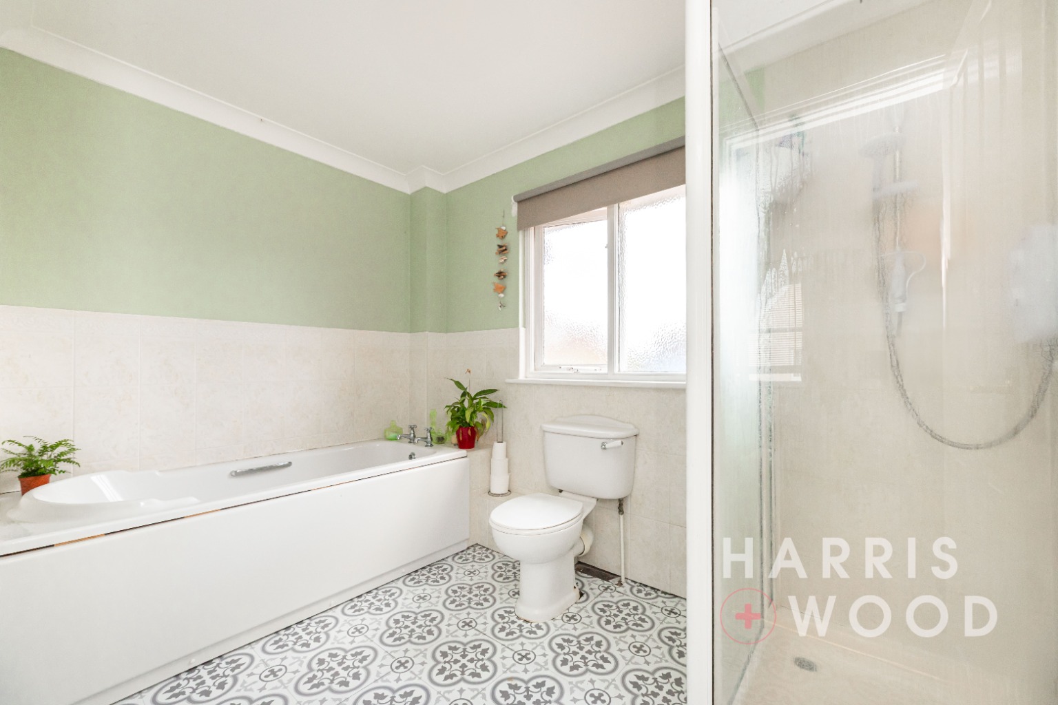 Double glazed window to rear, low level WC, wash hand basin, shower cubicle, bath, radiator