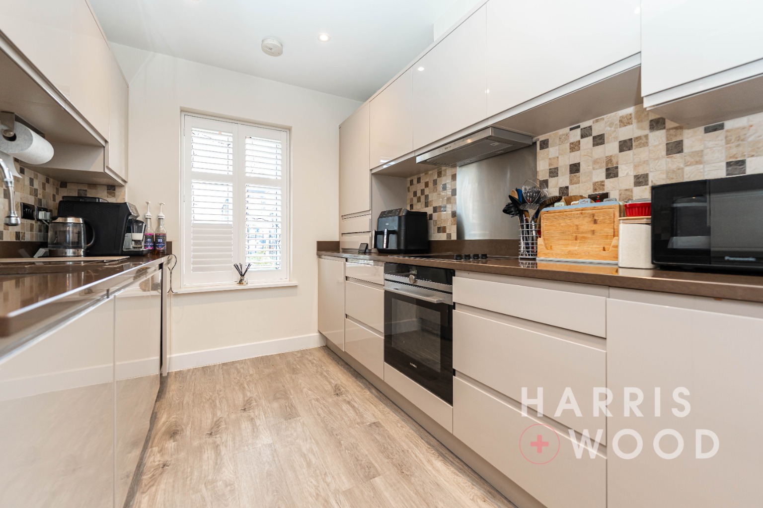 Double glazed window to front, wall and base level units, sink and drainer with mixer tap over, oven and hob, extractor fan, worktops, integrated appliances, radiator