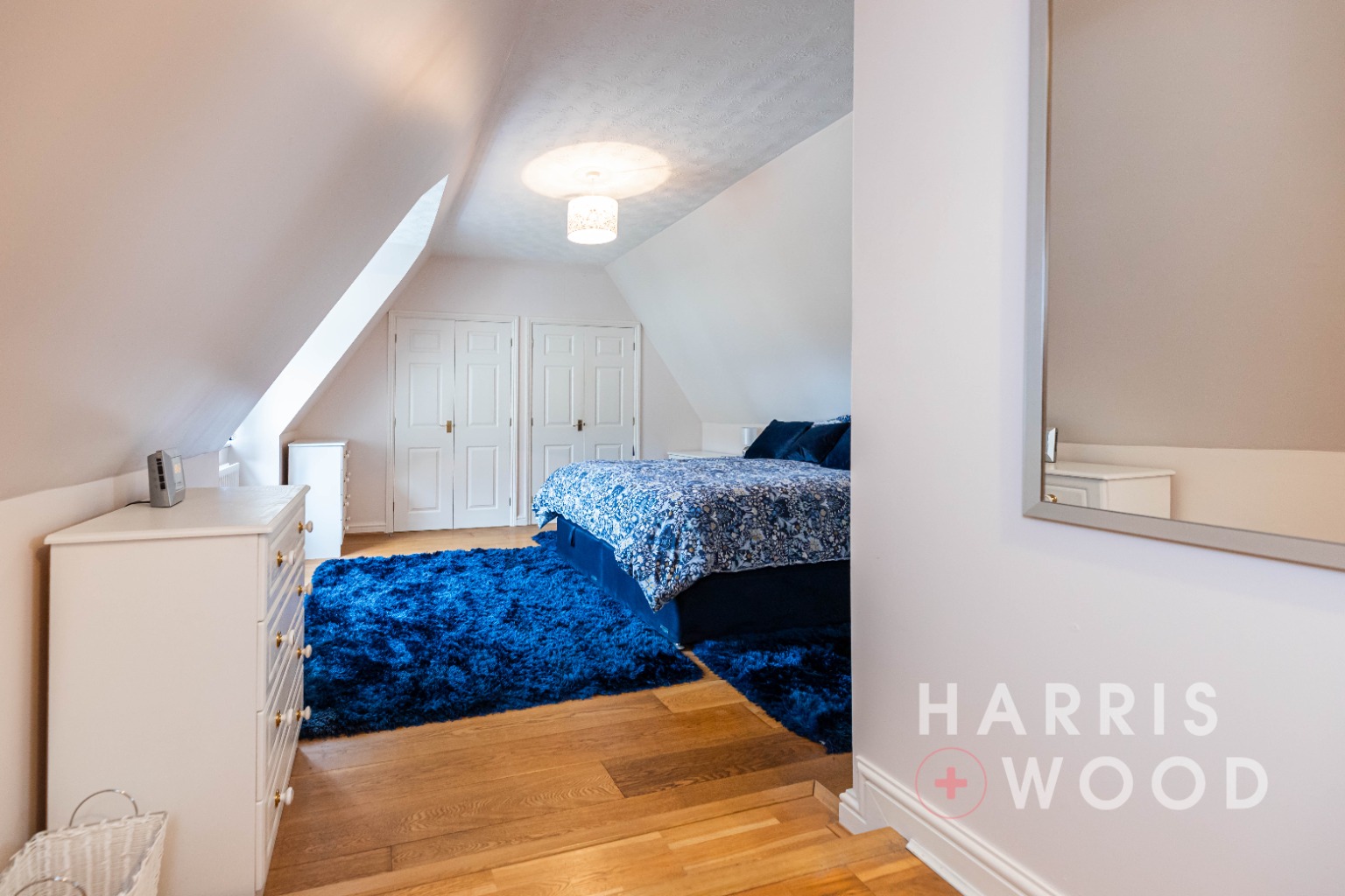 Upstairs, a spacious landing gives way to five well-proportioned bedrooms. The principal suite boasts fitted wardrobes, a large dormer window, and a sleek en-suite shower room. The second bedroom also enjoys an en-suite and built-in wardrobes, while the remaining three bedrooms are served by a contemporary family bathroom.
