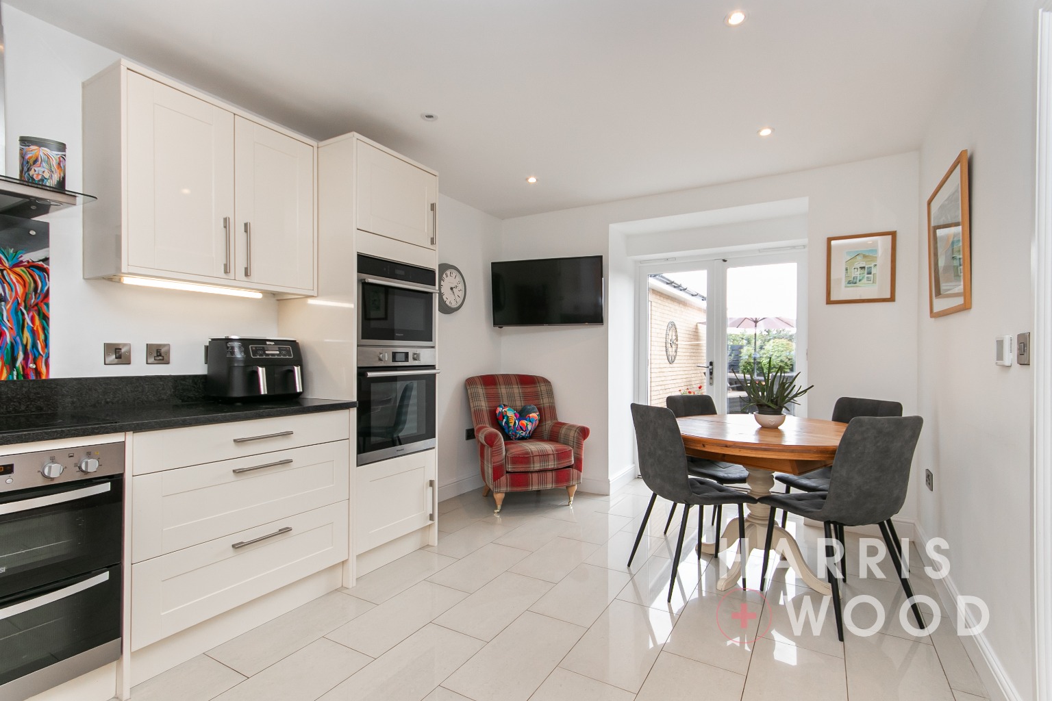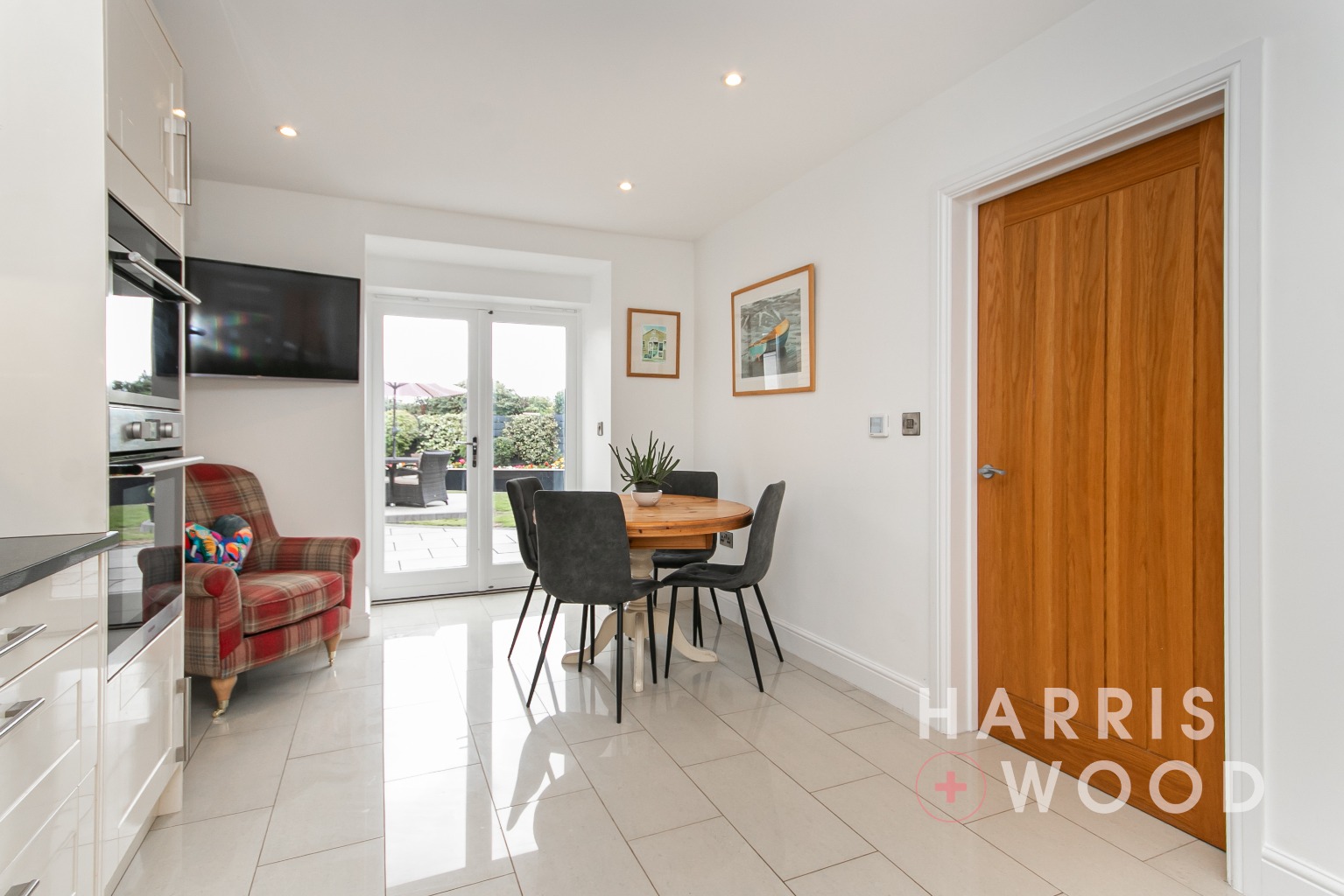 Double glazed windows and French doors, space for dining table and chairs, underfloor heating