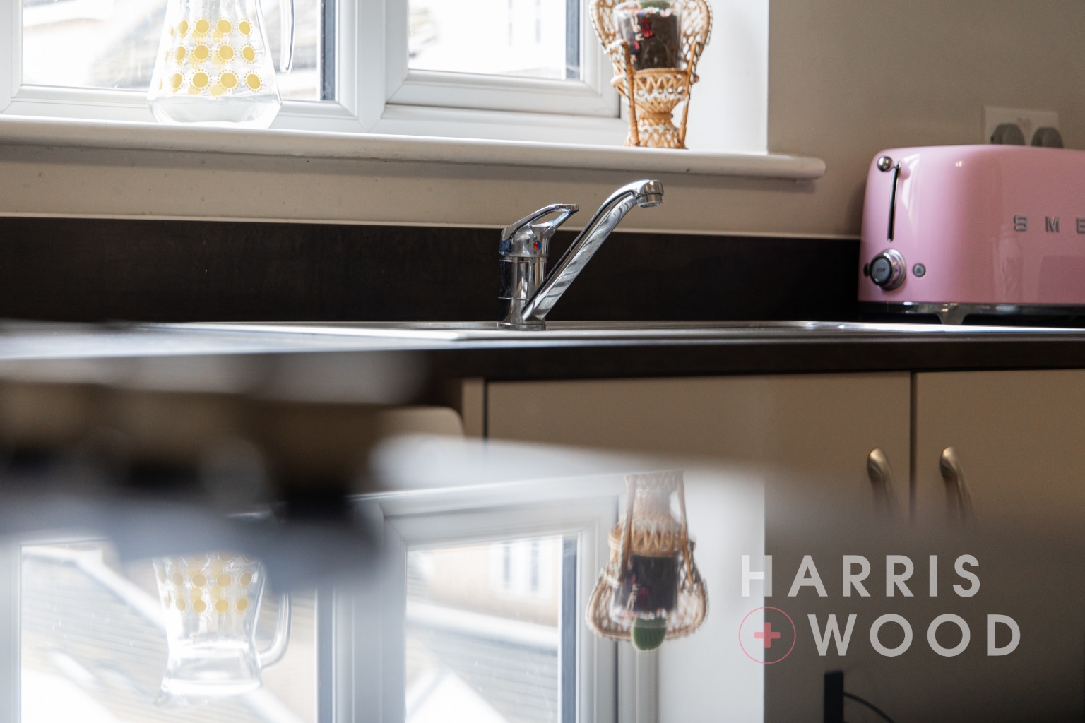 Double glazed window, wall and base level units, sink and drainer with mixer tap over, oven and hob, extractor fan, worktops, space for appliances
