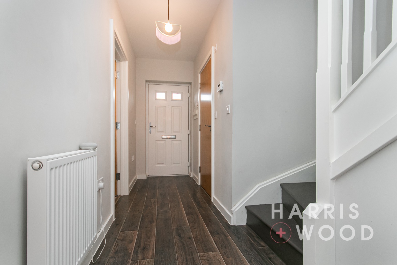 Entrance door, stairs rising to the first floor landing, doors leading off
