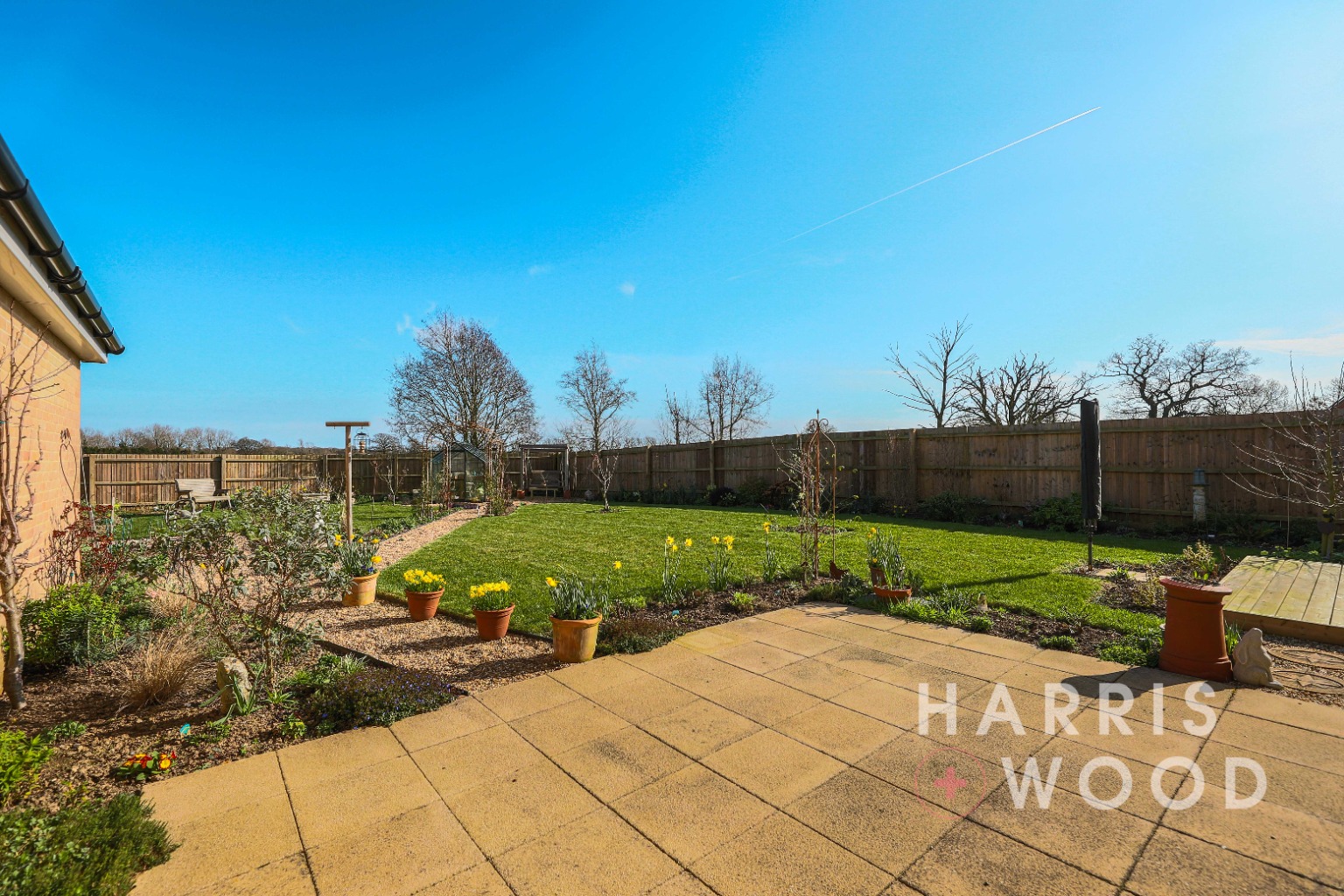 Fully enclosed and private, laid to lawn, patio and decking areas, vegetable plot, flower and shrub borders
