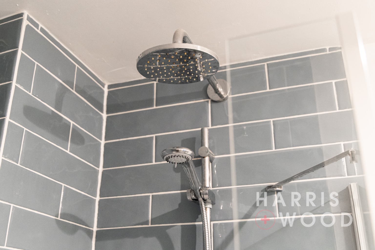 Double glazed frosted window, low level WC, wash hand basin, bath with shower over, tiled