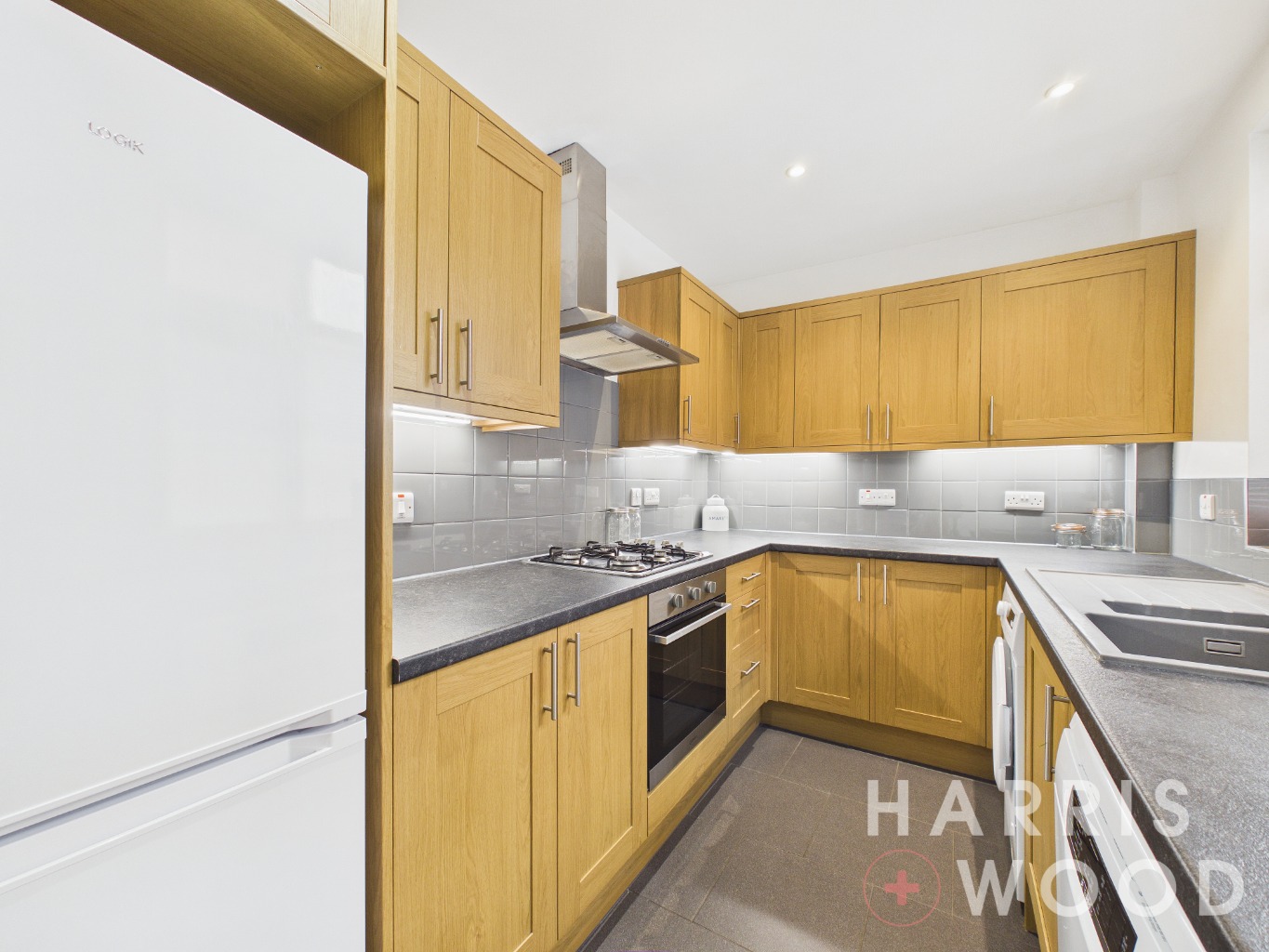 Double glazed window to side, wall and base level units, sink and drainer with mixer tap over, oven and hob, extractor fan, worktops, under-cupboard lighting, washing machine, fridge/freezer and dishwasher to remain
