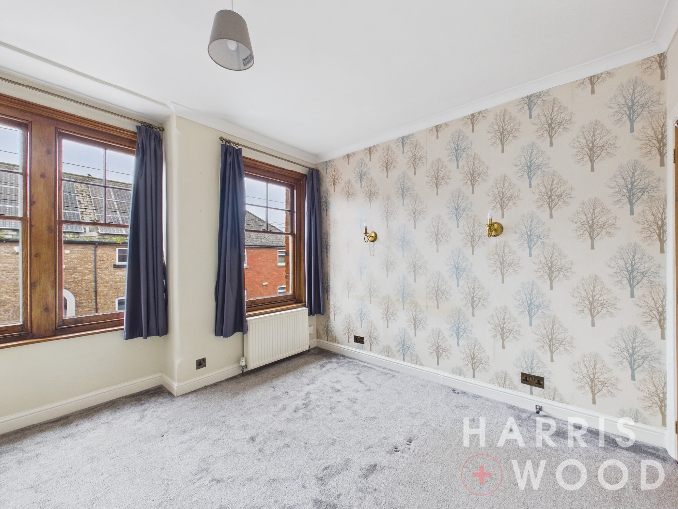 Two single glazed sash windows to front, triple wardrobe to remain, radiator