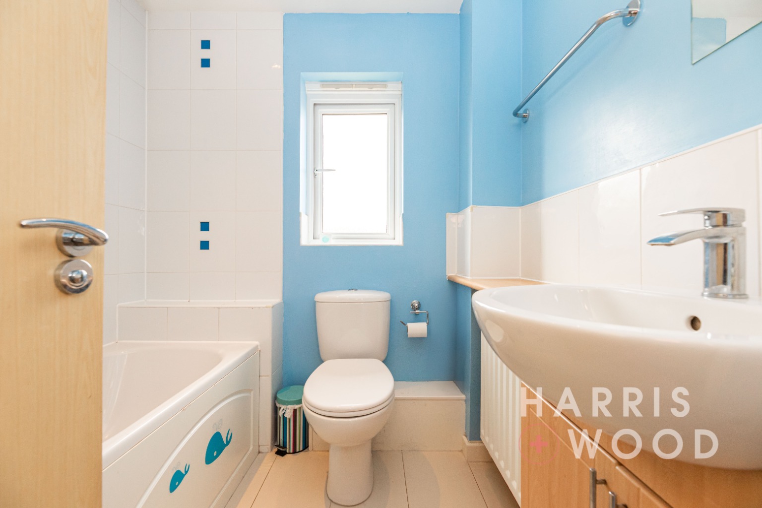 Double glazed window to rear, low level WC, wash hand basin, bath with shower over, radiator