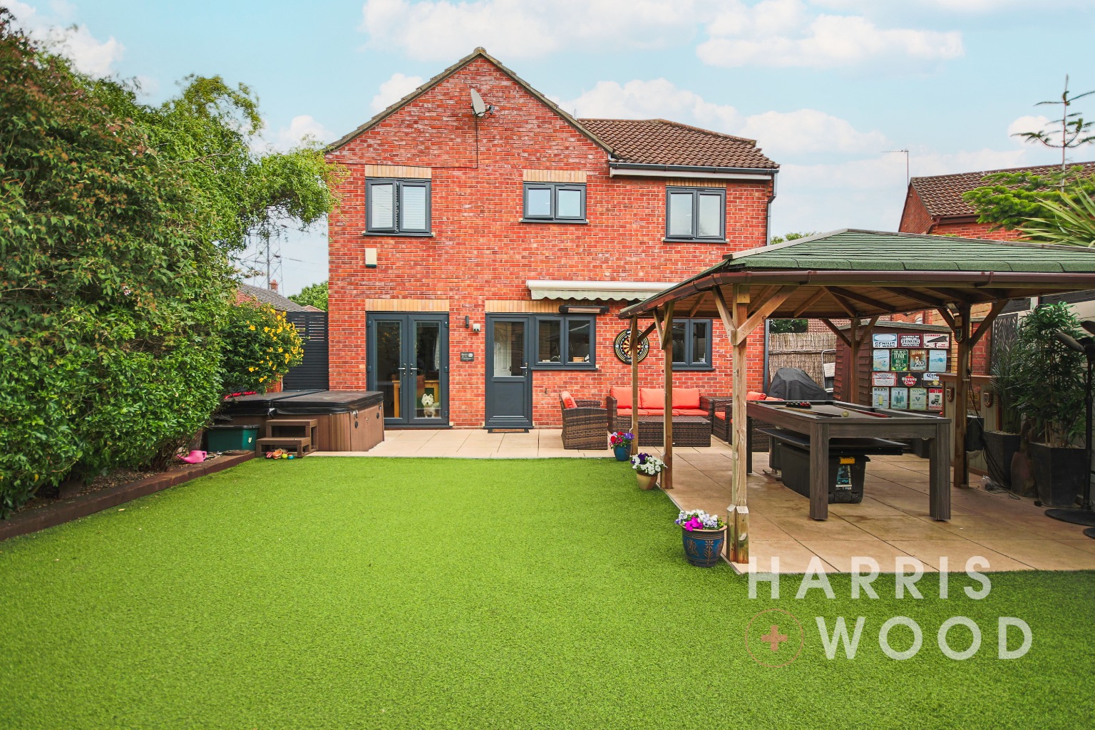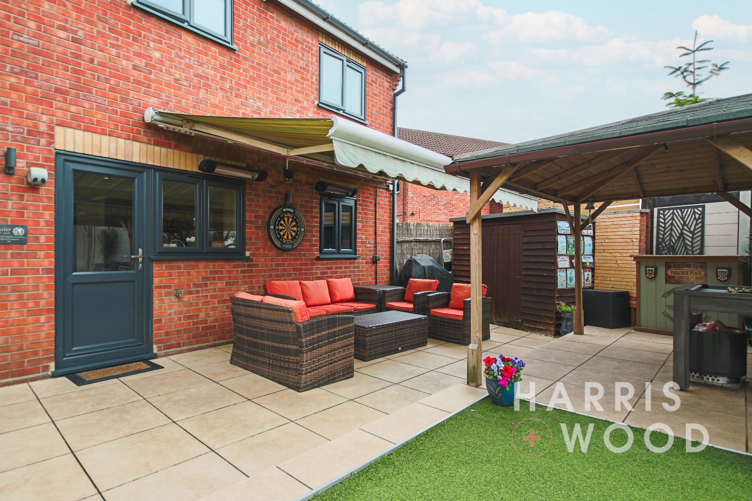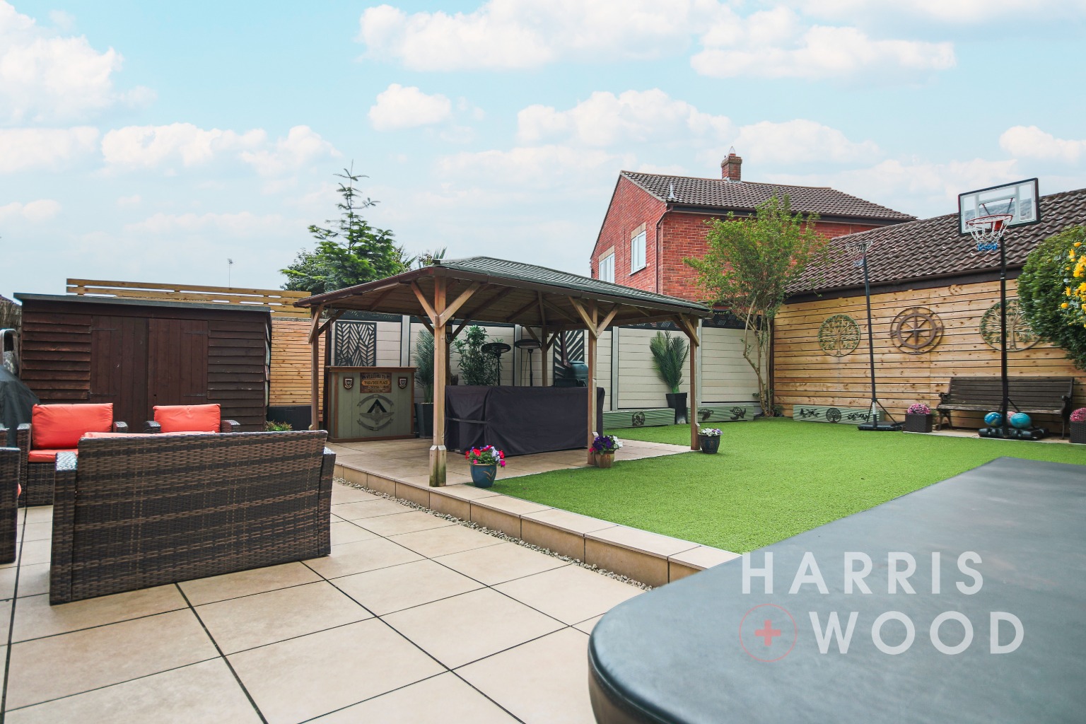 Fully enclosed and private, laid to AstroTurf, patio area, south facing