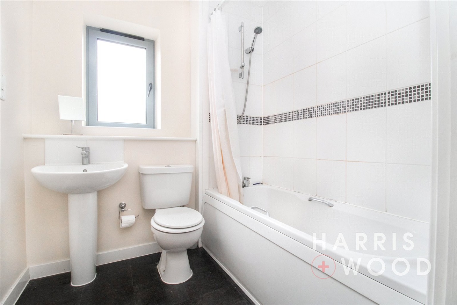 Low level WC, wash hand basin, shower cubicle, heated towel rail