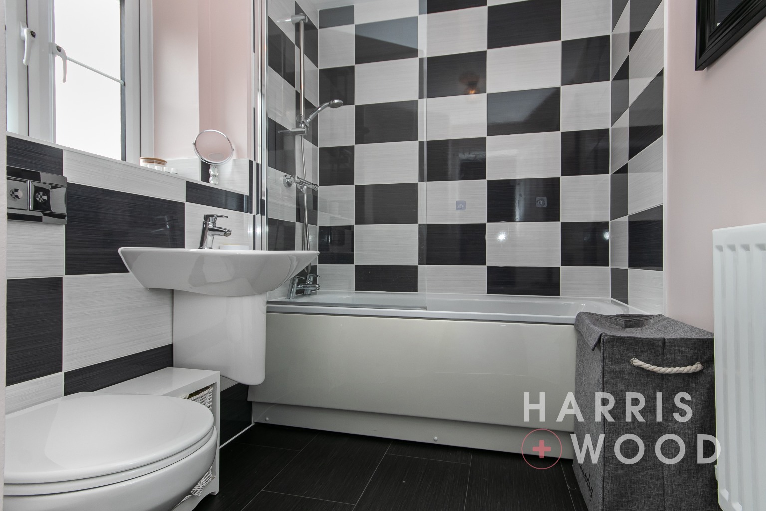 Double glazed window to rear, low level WC, wash hand basin, bath with shower over, radiator