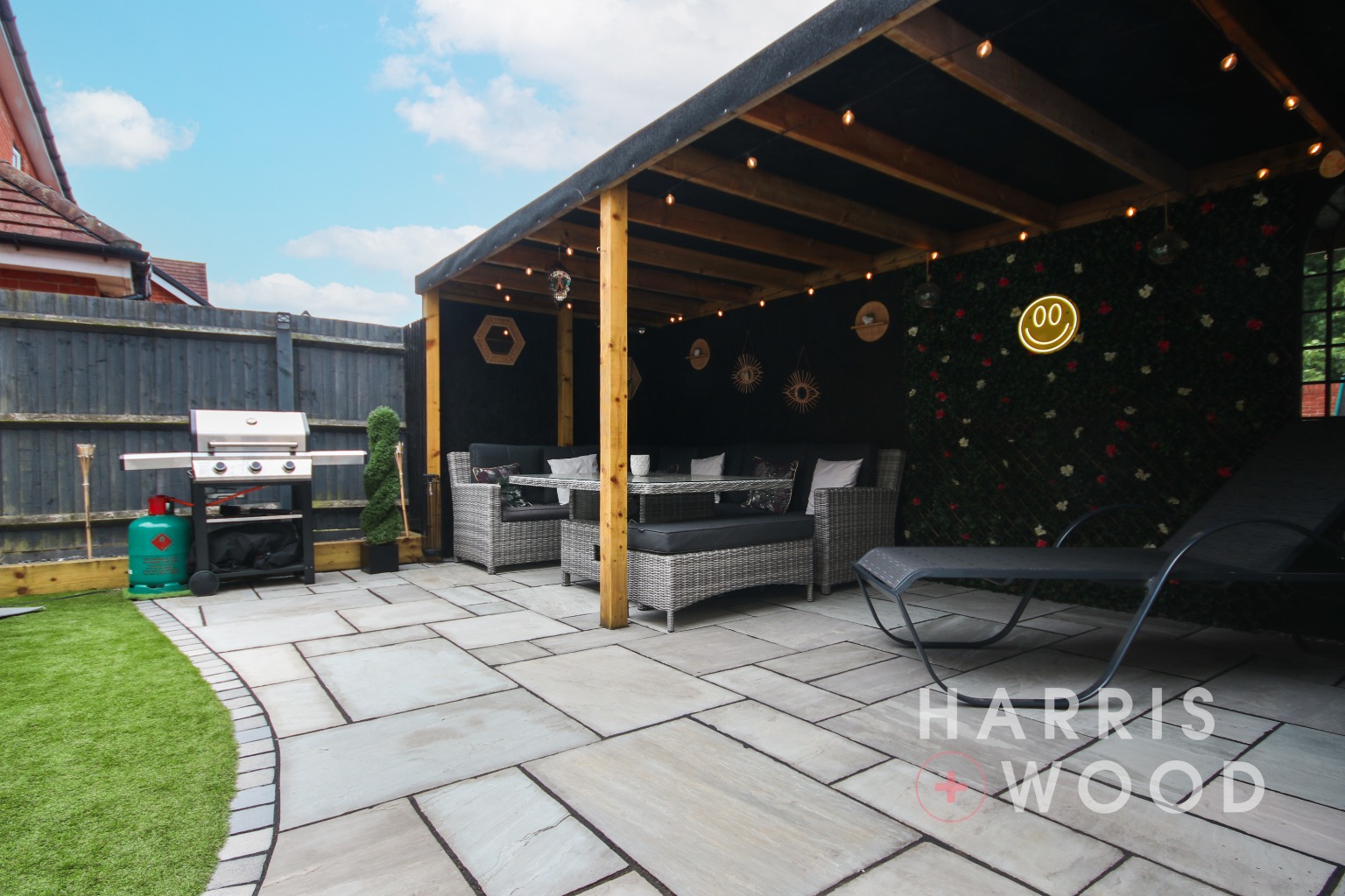 Fully enclosed and private, south facing, non-overlooked, laid to Artificial lawn, shed, large wooden gazebo to remain