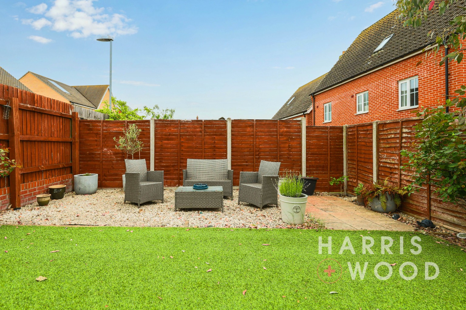 Fully enclosed and private, Artificial lawn, patio area, shingle seating area