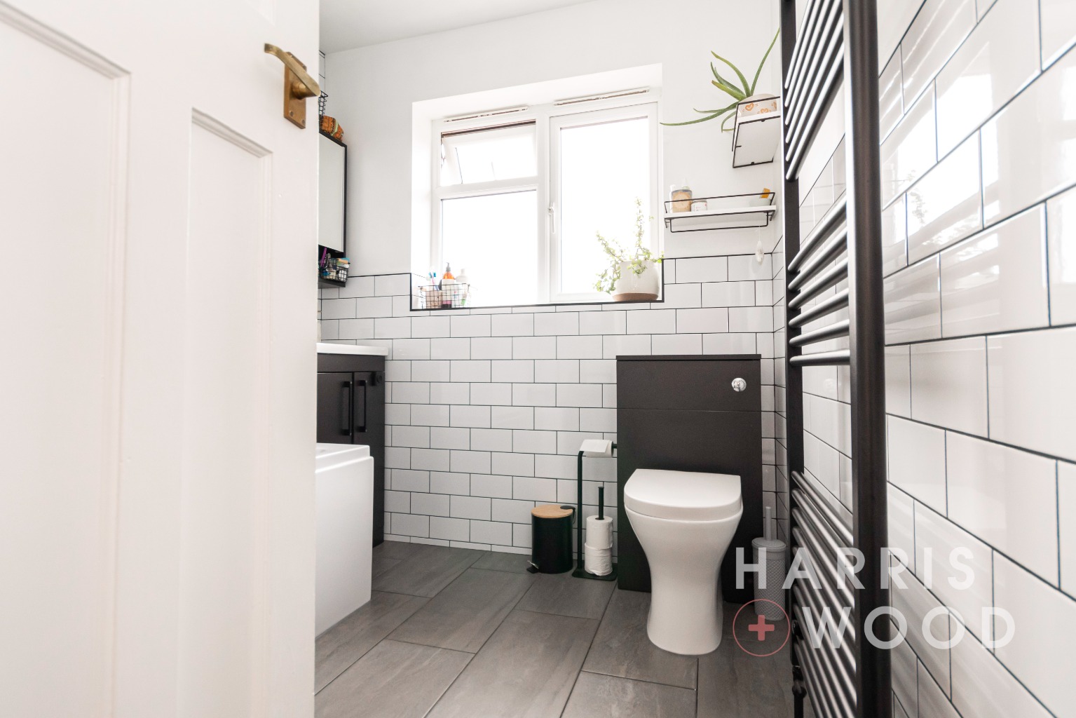 Double glazed frosted window, low level WC, wash hand basin, boiler cupboard