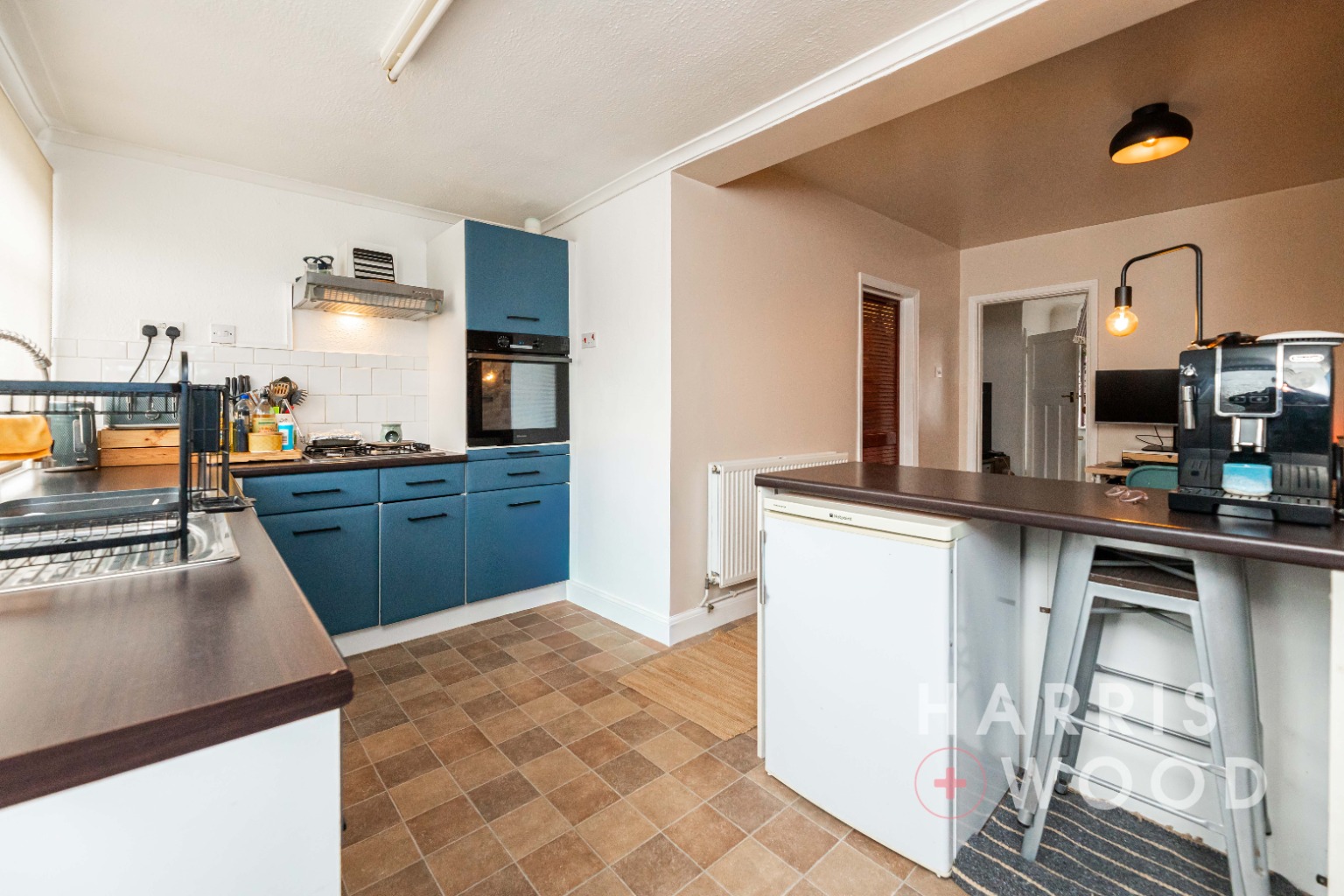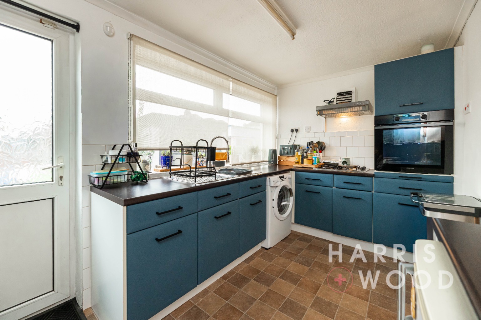 Double glazed window and door, wall and base level units, sink and drainer with mixer tap over, oven and hob, extractor fan, worktops, space for appliances