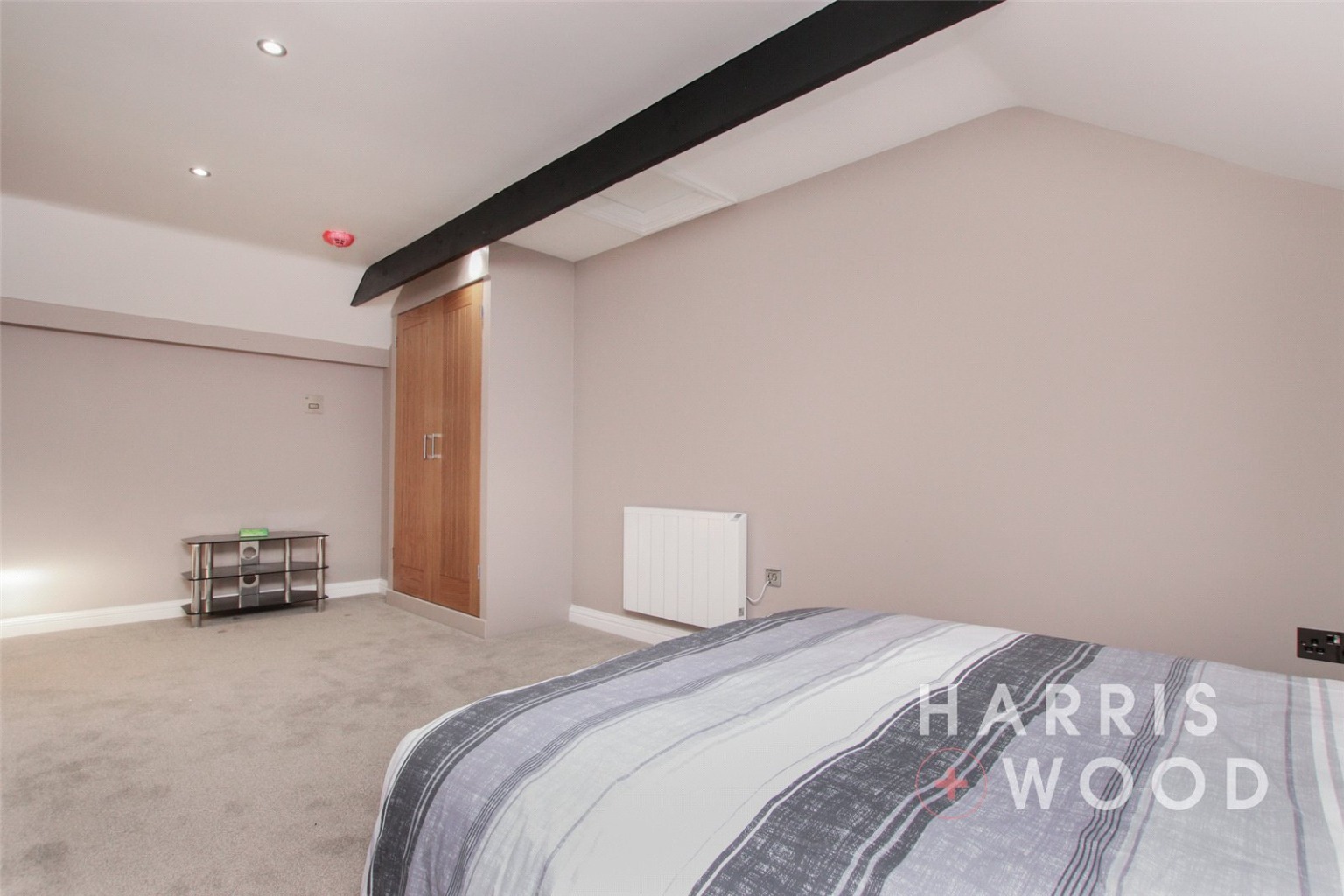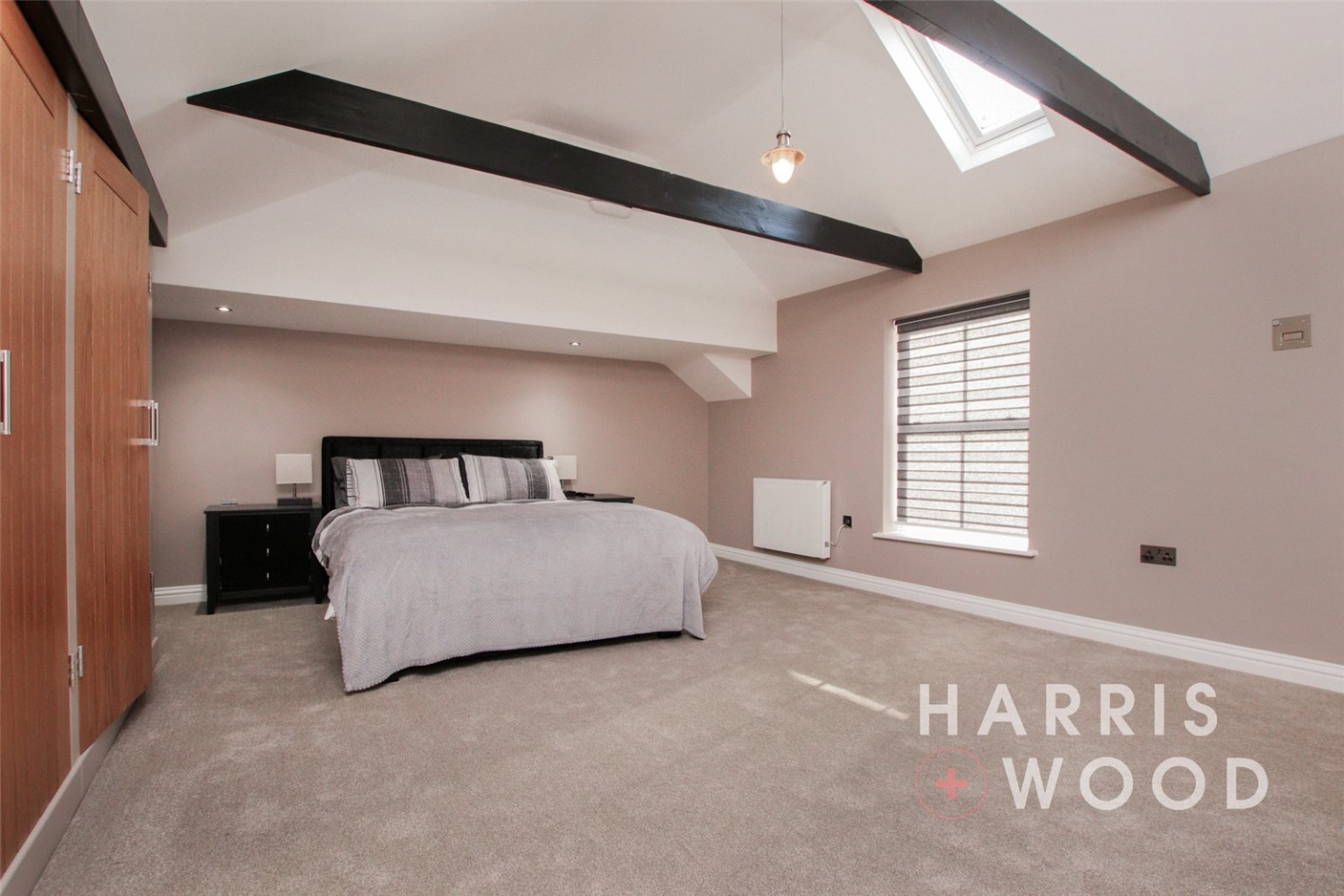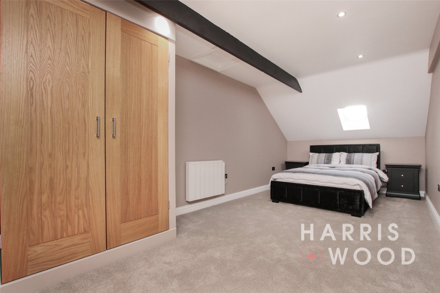 Velux window, built in wardrobes with solid oak doors, electric heater, spotlights to ceiling