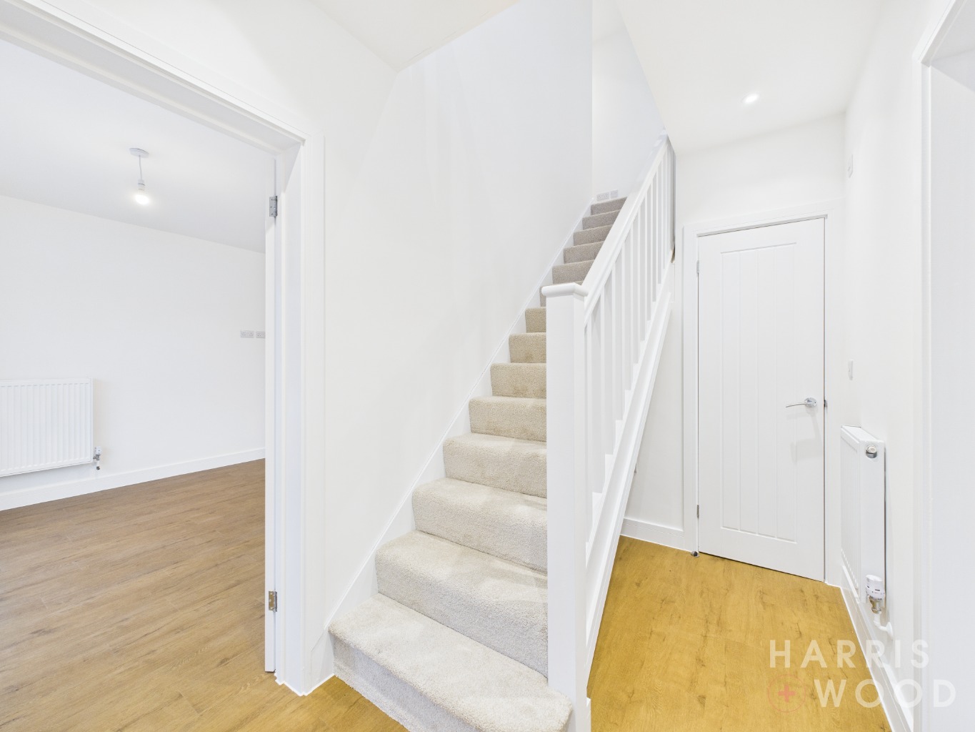 Entrance door, stairs rising to the first floor landing, doors leading off