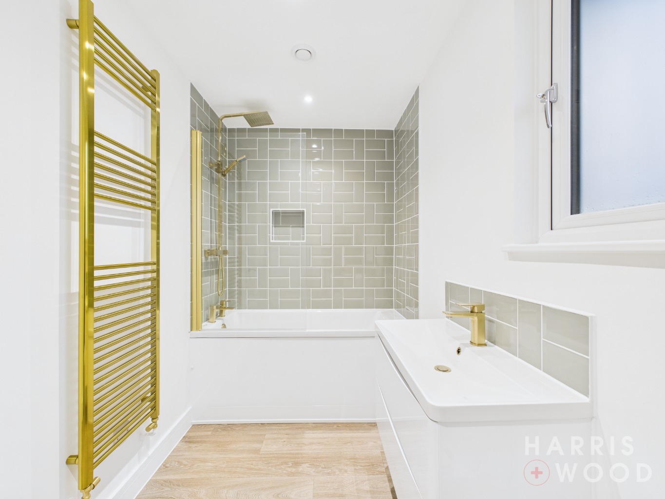 Low level WC, wash hand basin, heated towel rail