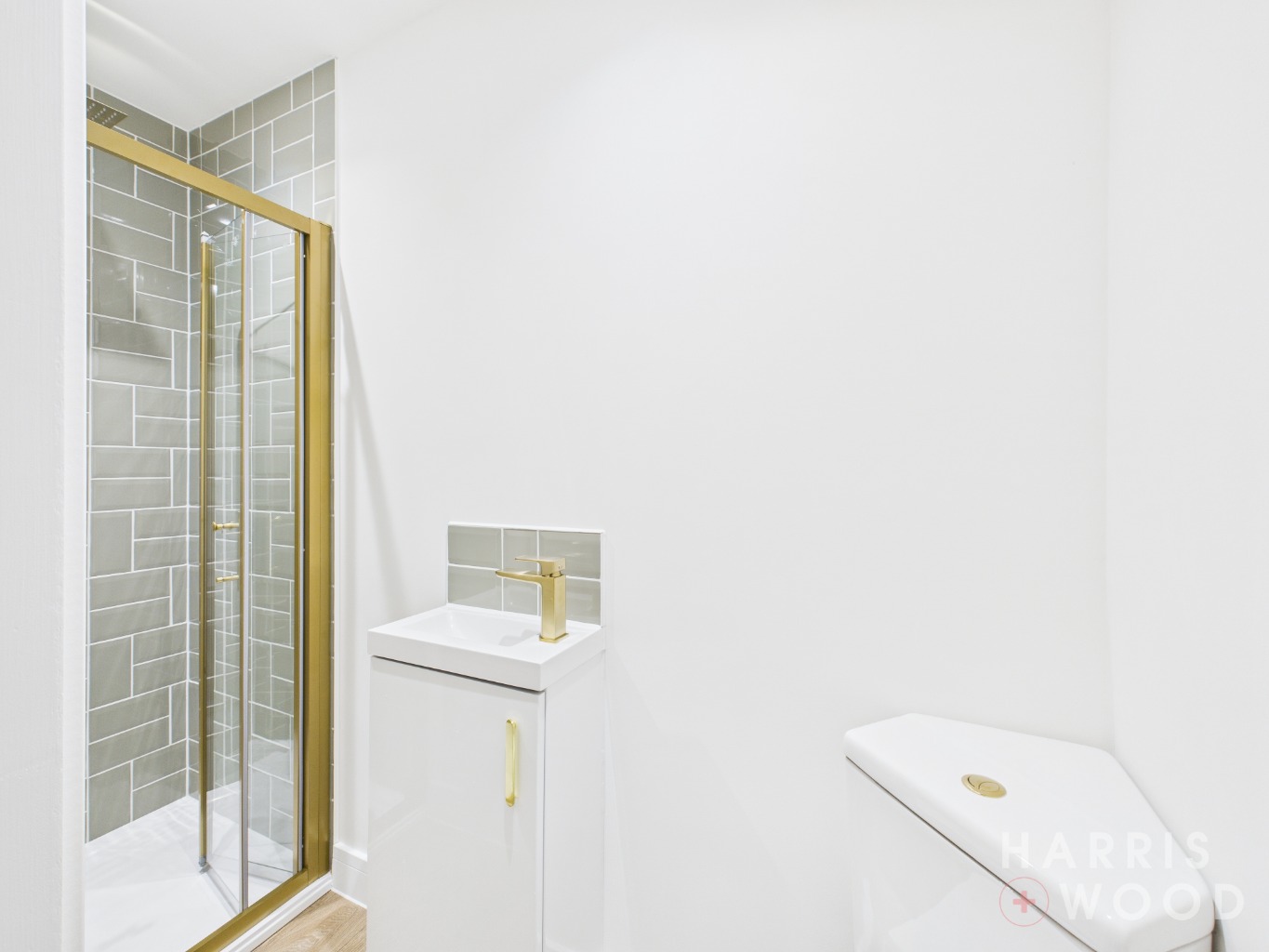 Low level WC, wash hand basin, shower, heated towel rail