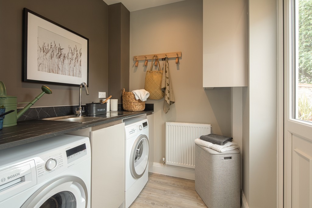 The central hallway provides the perfect entrance to this stunning family home. Take a look at the kitchen/dining room. This light-filled space could be the heart of your new home. Did you notice that patio doors open the space further to the garden? The sitting room offers an elegant adult escape. Imagine entertaining guests and stepping out of the French doors to enjoy refreshments al fresco. You’ll also find a few solutions to everyday mess with handy storage spaces and a utility room. The downstairs study offers a quiet spot – perfect for working from home.