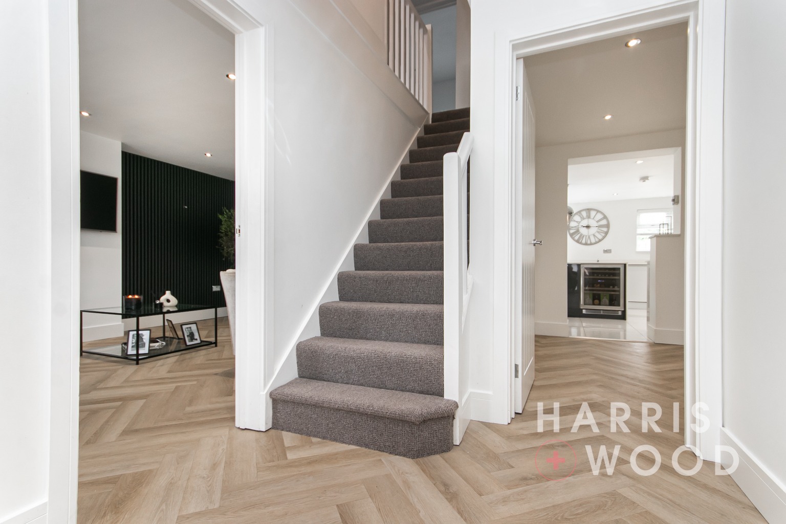 Entrance door, stairs rising to the first floor landing, doors leading off