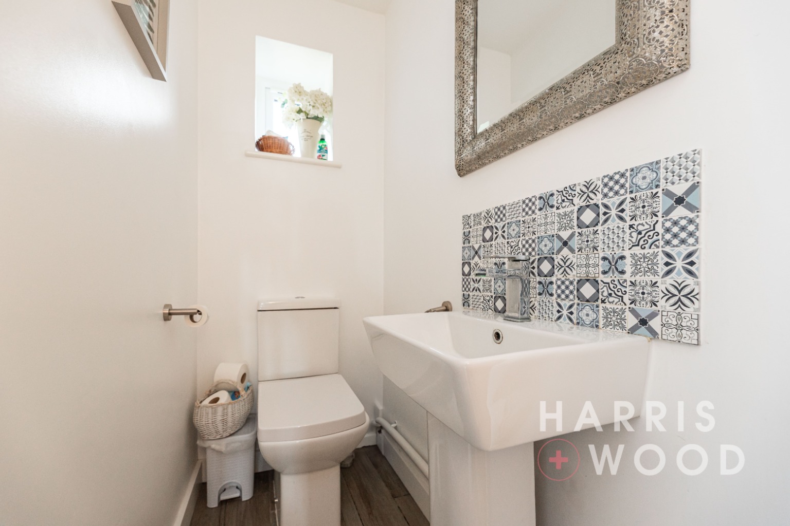 Double glazed window to rear, low level WC, pedestal wash hand basin, tiled splashbacks