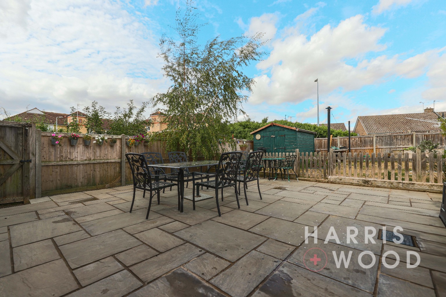 Fully enclosed and private, paved patio area, gate leading to further garden area which is mainly laid to lawn, timer shed to remain, outside tap, side access