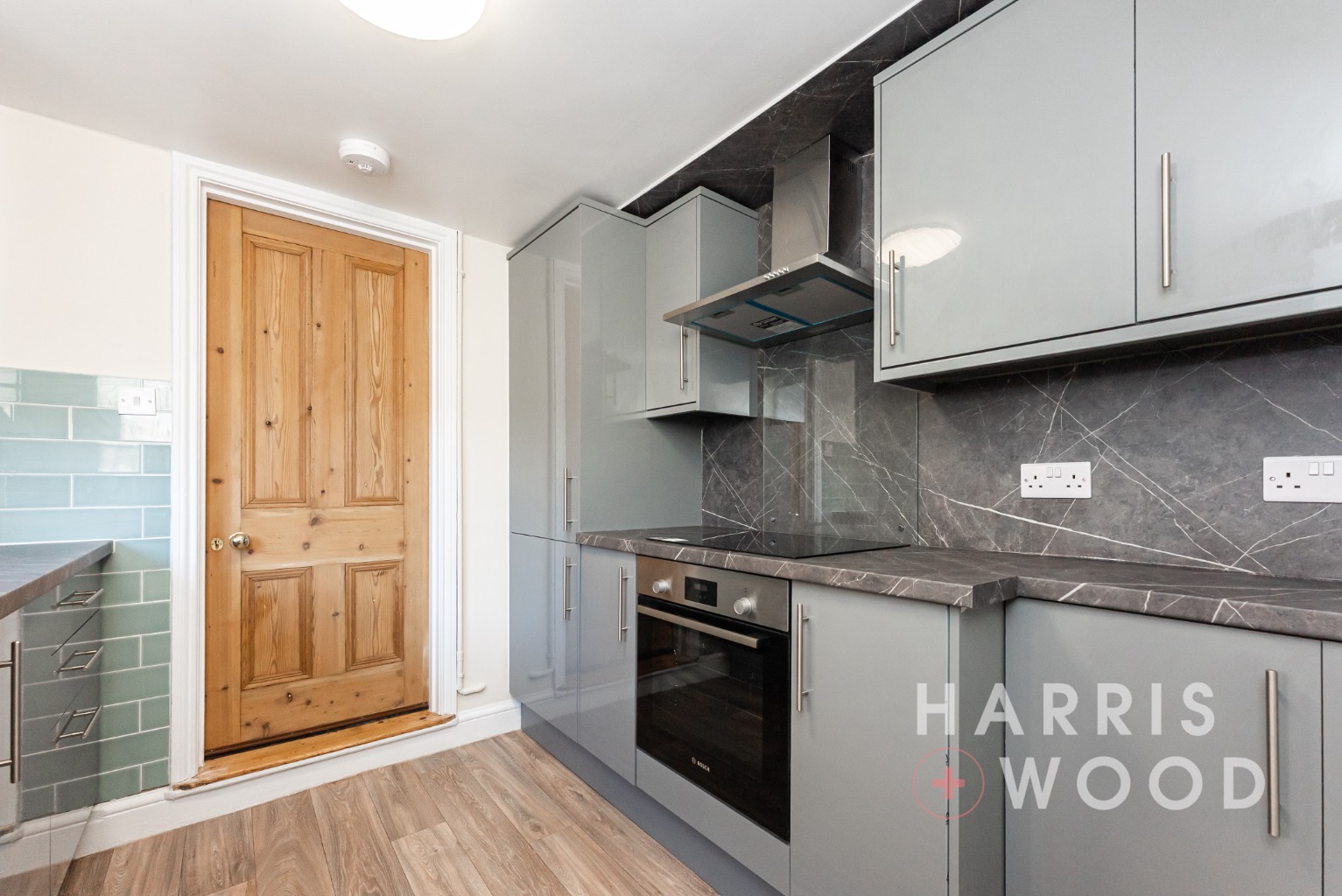 Double glazed window to side, wall and base level units, sink and drainer with mixer tap over, oven and induction hob, extractor fan, worktops, integrated appliances including a dishwasher