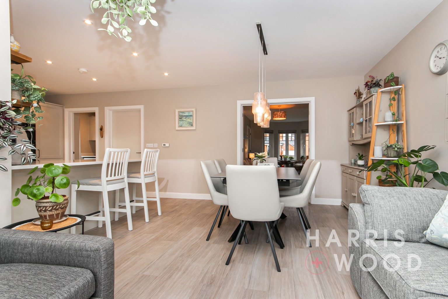 The expansive kitchen/diner/family room truly forms the hub of this magnificent home. Designed with contemporary living in mind, this open-plan area offers ample space for cooking, dining, and socialising. The kitchen is well-appointed with a range of fitted units, integrated appliances, and generous work surfaces, catering to all culinary needs. The dining area comfortably accommodates a large family table, while the adjacent family area provides a relaxed setting for everyday living, with direct access to the private rear garden, seamlessly blending indoor and outdoor spaces.