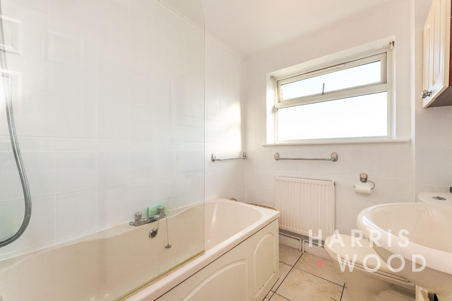 Double glazed window, low level WC, wash hand basin, bath with shower over, radiator