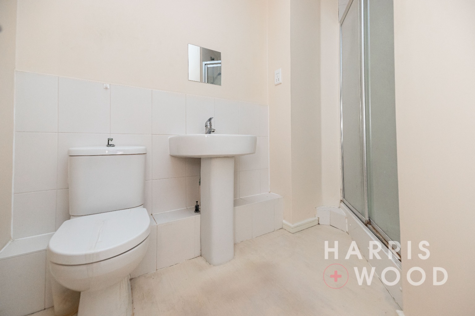 Low level WC, wash hand basin, shower cubicle, radiator