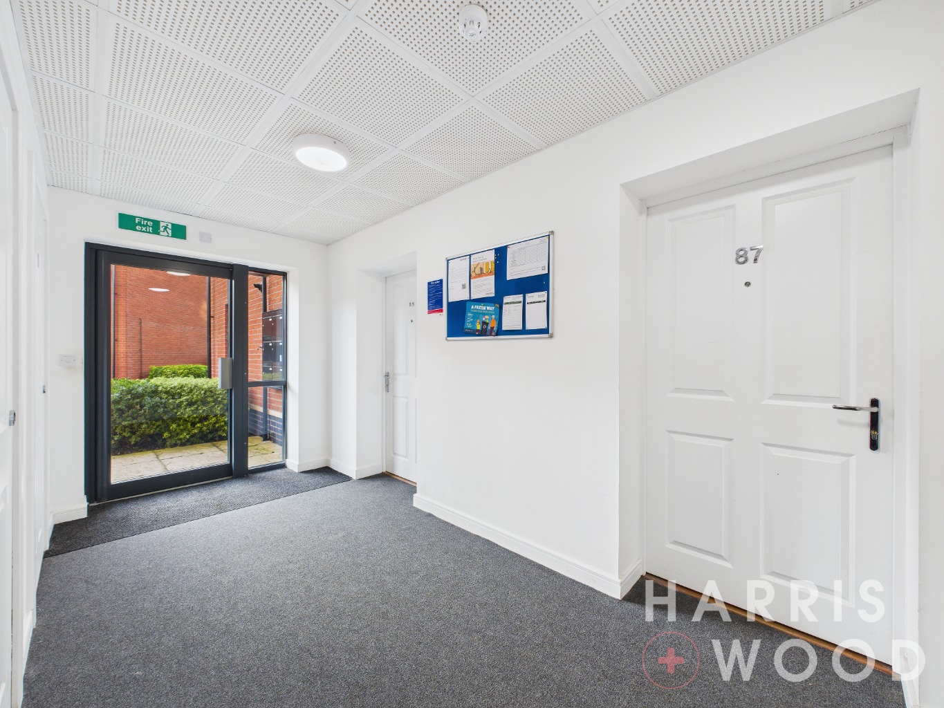 Entrance door, storage cupboard, doors leading off