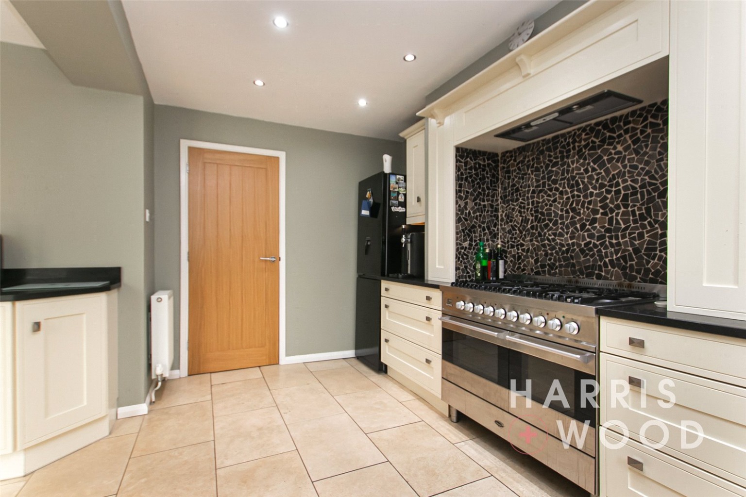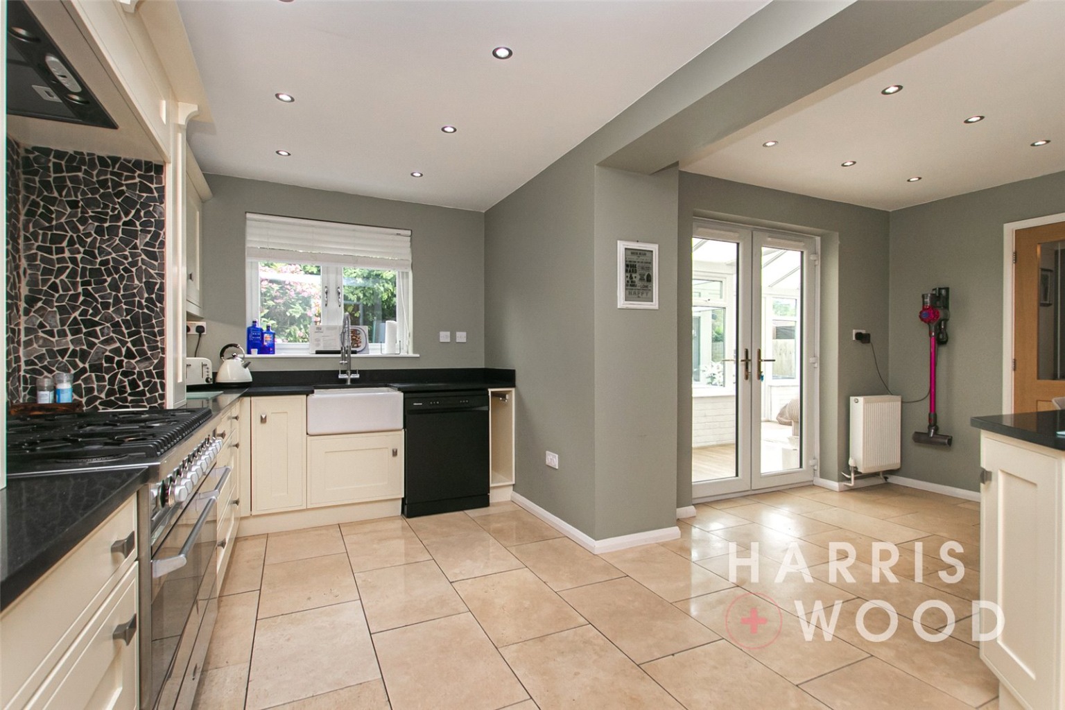 Double glazed window to rear, door leading into the conservatory, wall and base level units, butler sink, range cooker, hob, extractor fan, worktops, space for appliances, radiator